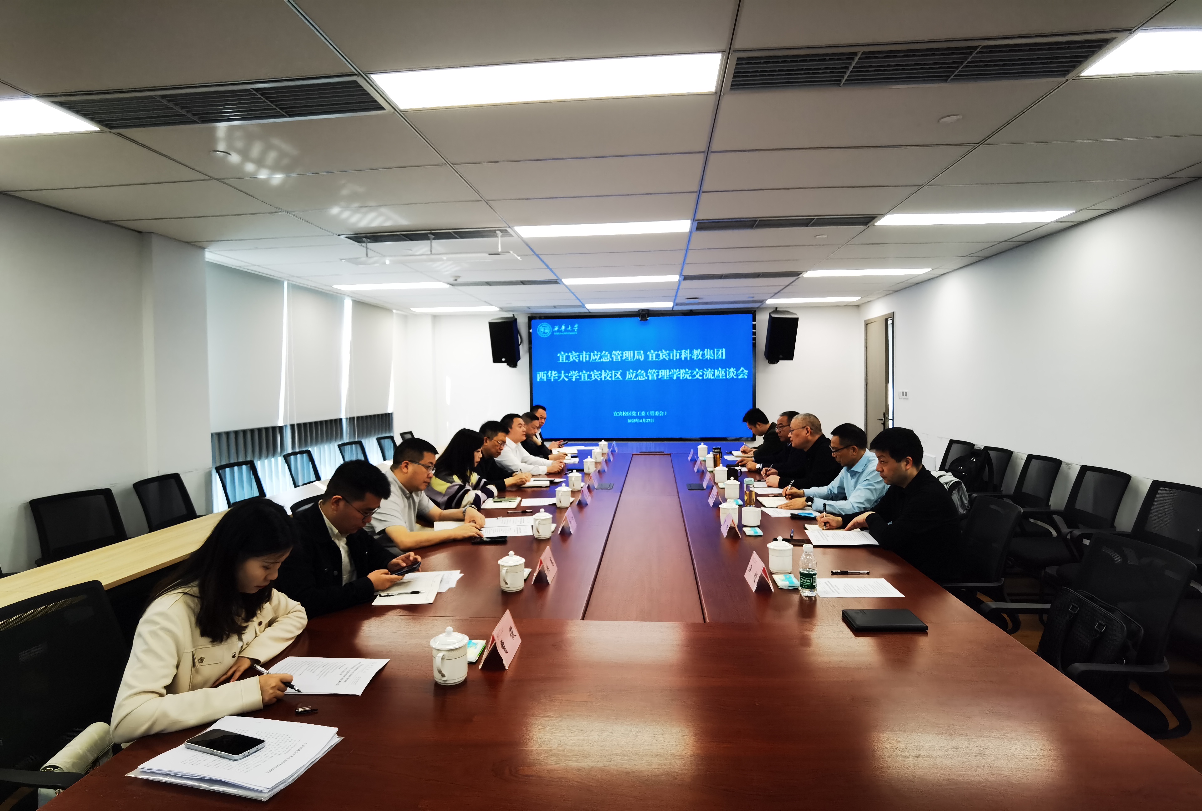郭庆介绍了宜宾市应急管理工作情况,希望与学校学院加强校地合作,通过校园招聘引进应急管理专业人才,共同推动宜宾市应急管理体系和能力现代化建设。杨林介绍了关于组建“宜宾市应急管理学院”的初步设想方案。